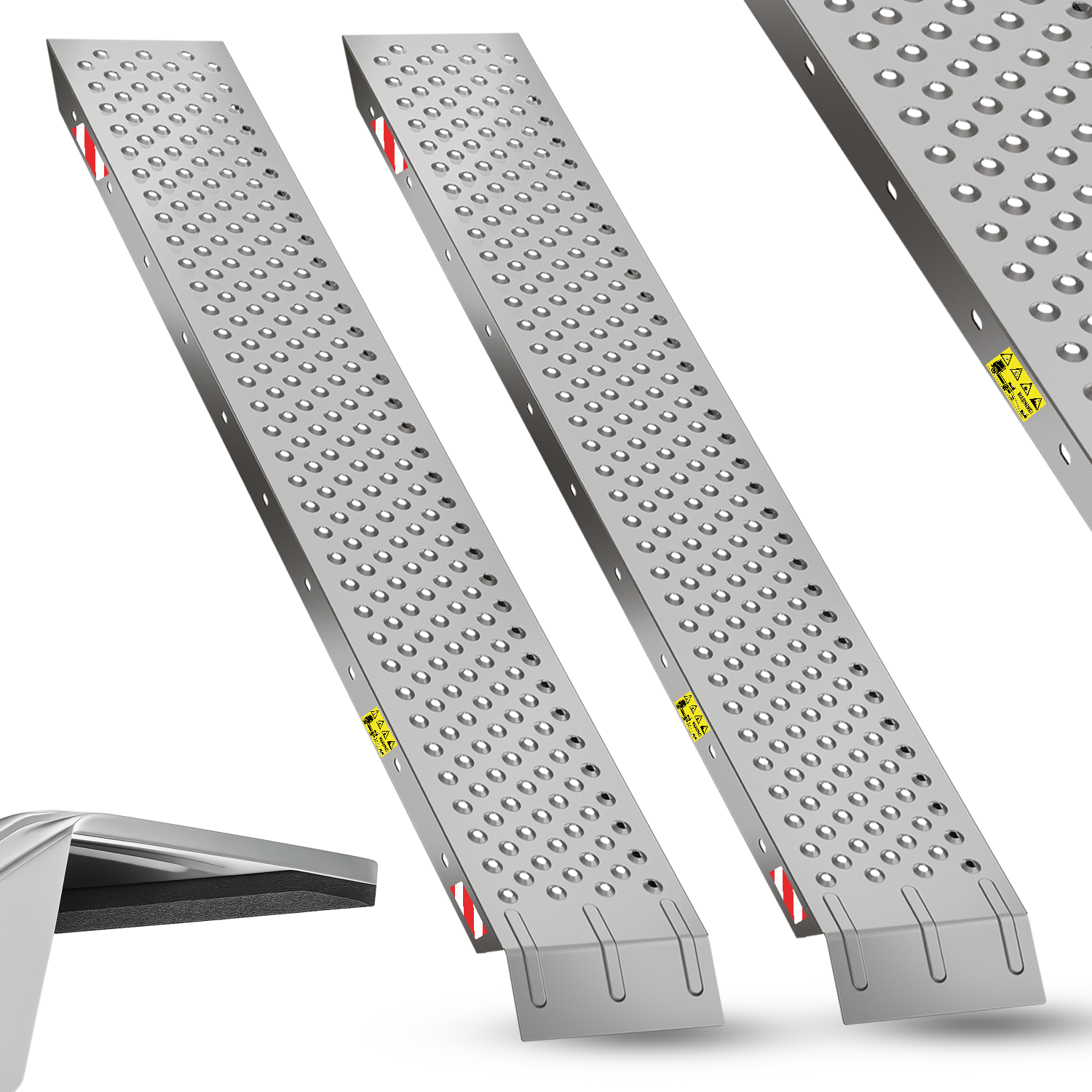 Technische Daten: Belastbarkeit je Rampe: 200 kg (gesamt 400 kg) Gewicht je Rampe: ca. 7,5 kg Material: Verzinkter Stahl – robust, wetterfest & rutschfest perforiert