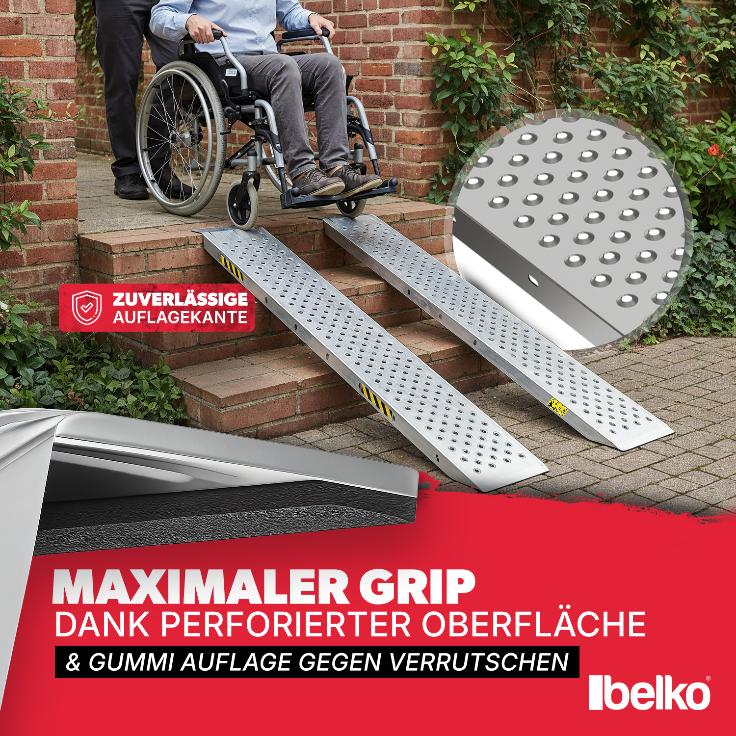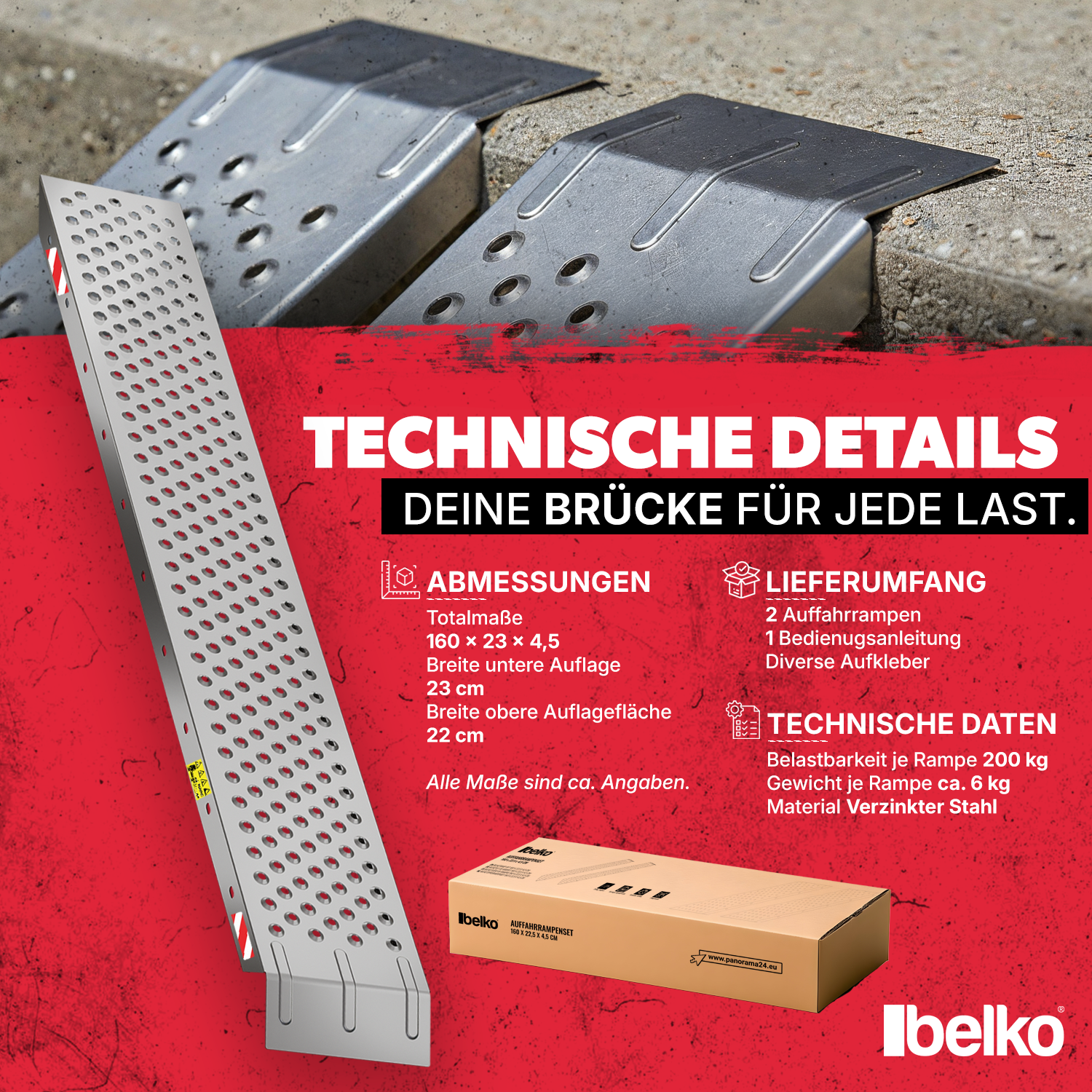 🚚 LIEFERUMFANG & QUALITÄT: 2x Auffahrrampen mit je 200 kg Tragkraft (gesamt 400 kg). Hergestellt aus verzinktem Stahl – robust, rostgeschützt und langlebig. Belko® steht für geprüfte Qualität und schnellen Versand aus Deutschland.