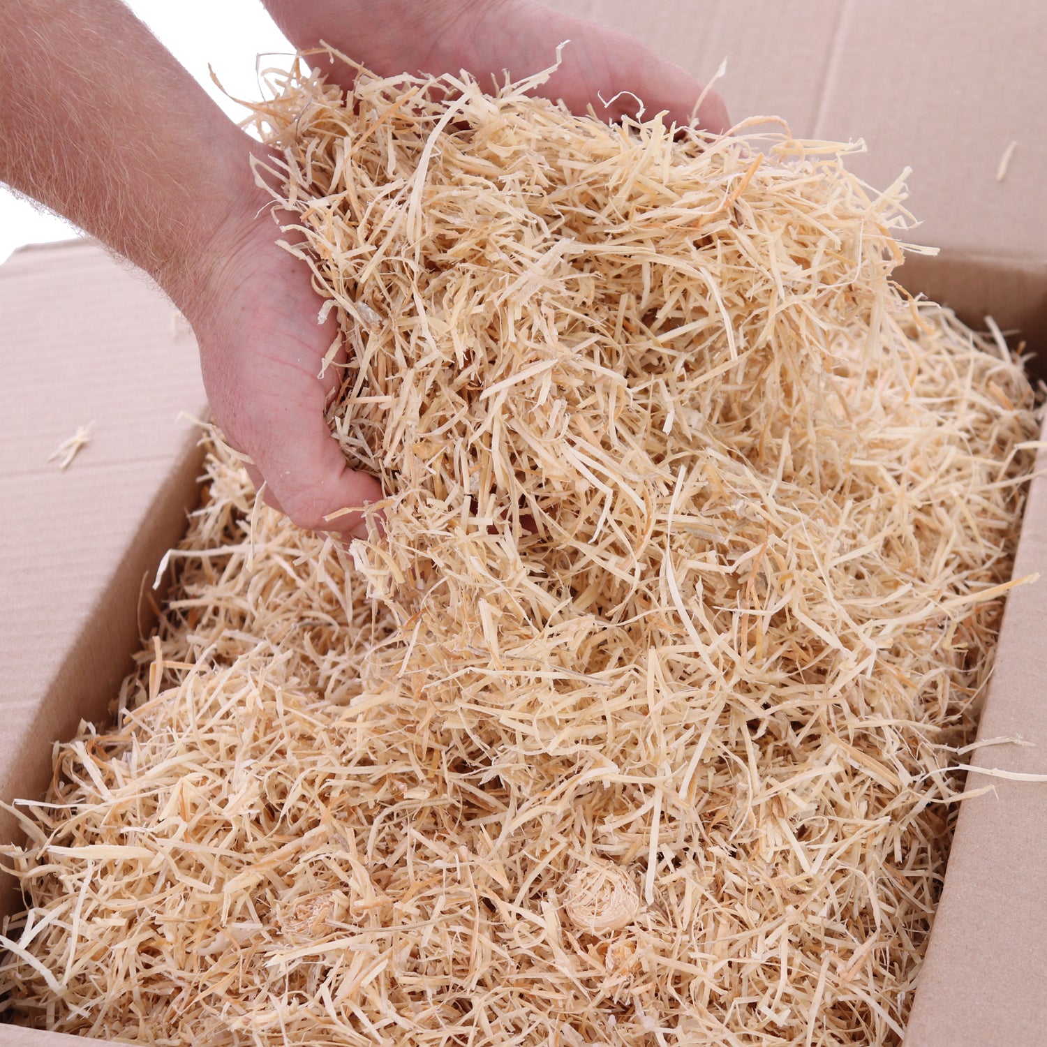 1 Karton mit 8 kg loser Holzwolle - mit Wachs behandelt