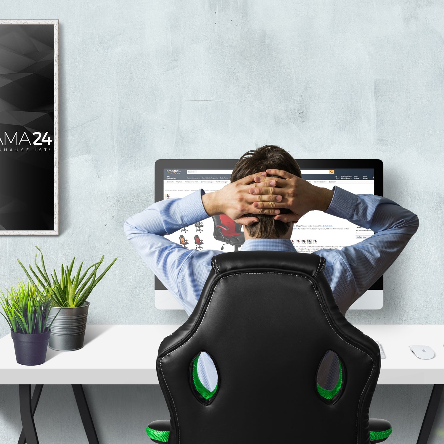 Mit unserem Bürostuhl in „Racing“ Optik bieten wir Ihnen einen hohen Sitzkomfort. Dieser Chefsessel überzeugt durch eine ergonomisch geformte Sitz- und Rückenfläche, auf das Körpergewicht einstellbare Wipp Mechanik sowie stufenlose Höhenverstellbarkeit dank Sicherheitsgasdruckfeder. Die sportliche Optik, gute Verarbeitung und wertige Materialien lassen den Stuhl nicht nur gut aussehen, sondern gewährleiten ein angenehmes Sitzen, auch wenn Sie für längere Zeit Platz nehmen. Dank des eingearbeiteten farbigen Textilgewebes haben Sie nicht das Gefühl, am Rückenbereich zu schwitzen. Der Schreibtischstuhl lässt sich ganz individuell an Ihre Bedürfnisse anpassen. Nicht nur beliebt bei Gamern, dieser Stuhl fügt sich nahtlos in Ihre Raumatmosphäre ein und schafft einen tollen Kontrast. Dank der Farbauswahl können Sie zwischen 9 verschiedenen Farben wählen. Die Fünf hochwertigen Doppelsicherheitsrollen schonen Teppich, Laminat oder Parkett bei leiser Rollbewegung. Dies und viele weitere Vorteile bieten wir Ihnen zu einem tollen Preis-Leistungs-Verhältnis.